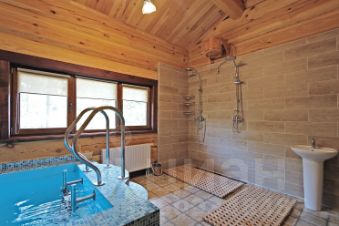 Земельный участок 24 сотки огорожен каменным забором автоматическими воротами. Над восточной стороной участка внушительный террасированный холм. В нём спрятан большой винный погреб. В кедровой бане большая купель с противотоком и озонатором. Русская парная с кедровыми стенами, с лежанками из массива кедра, с потолками из осины и полами из лиственницы. Печь в парной обложена жадеитом. Под баней просторный гараж на 2 больших а/м. Двор и все отмостки выложены гранитными плитами толщиной 80 мм. 18 фруктовых деревьев и 30 сосен и елей.