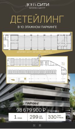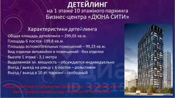 Предлагается к продаже помещение 300 кв.м. расположенное на 1/10 этажного паркинга Бизнес-Центра "Дюна-Сити" класса А.