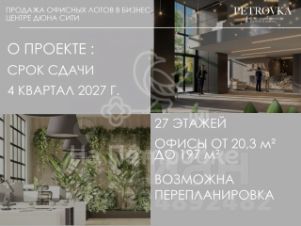 В 27-этажном БЦ "Дюна Сити" есть офисы от 20 м² для 3-х человек до 197 м² для большой команды на 9+ человек . Возможно объединять помещения и делать перепланировку.