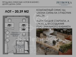 * Лот: 20,39 м2, самый компактный офис бизнес-центра "Дюна Сити" на 3 рабочих места, идеален для стартапа, а также для создания персонального кабинета
