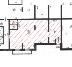 Высота потолков с учетом проходящих общедомовых коммуникаций от 2,2 до 2,6 м, имеется мокрая точка, планировка помещения правильной прямоугольной формы, требует капитального ремонта.