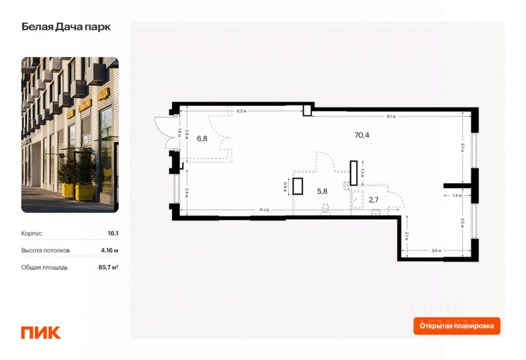 Продаётся нежилое помещение свободного назначения в квартале ПИК Белая Дача парк.