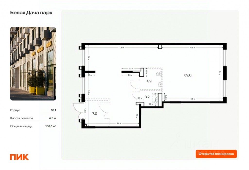 - Открытая планировка, возможно объединить несколько помещений