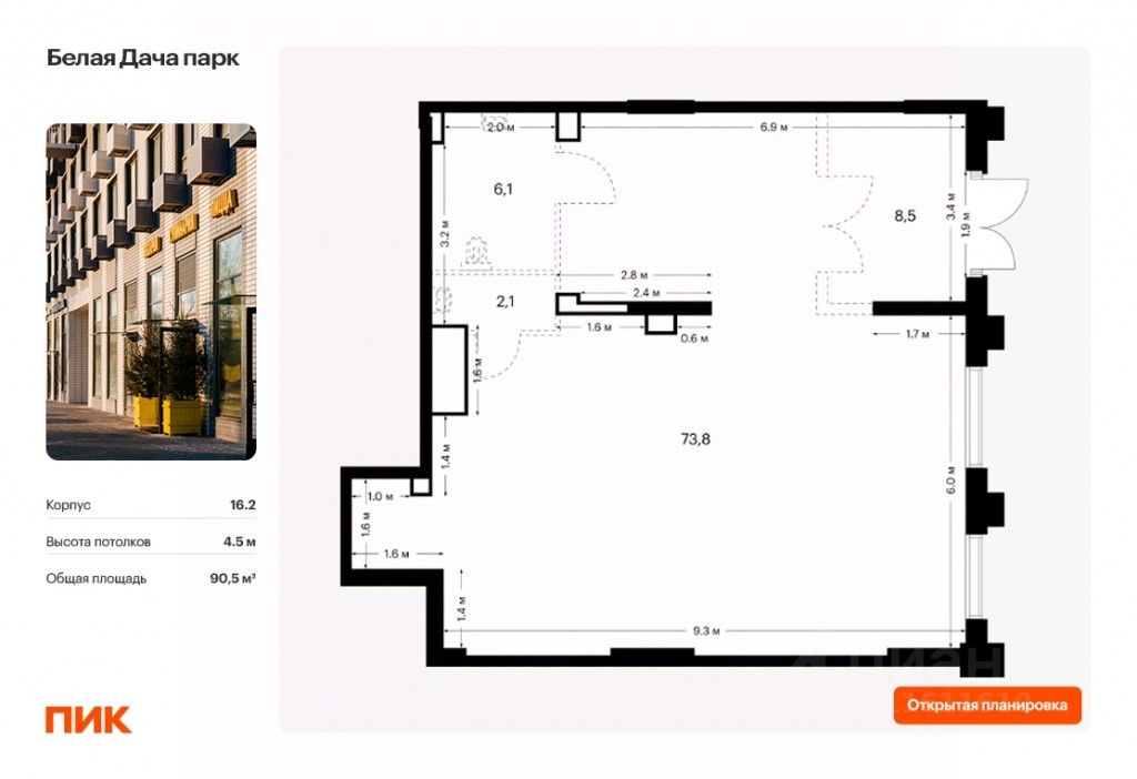 Продаётся нежилое помещение свободного назначения в квартале ПИК Белая Дача парк.