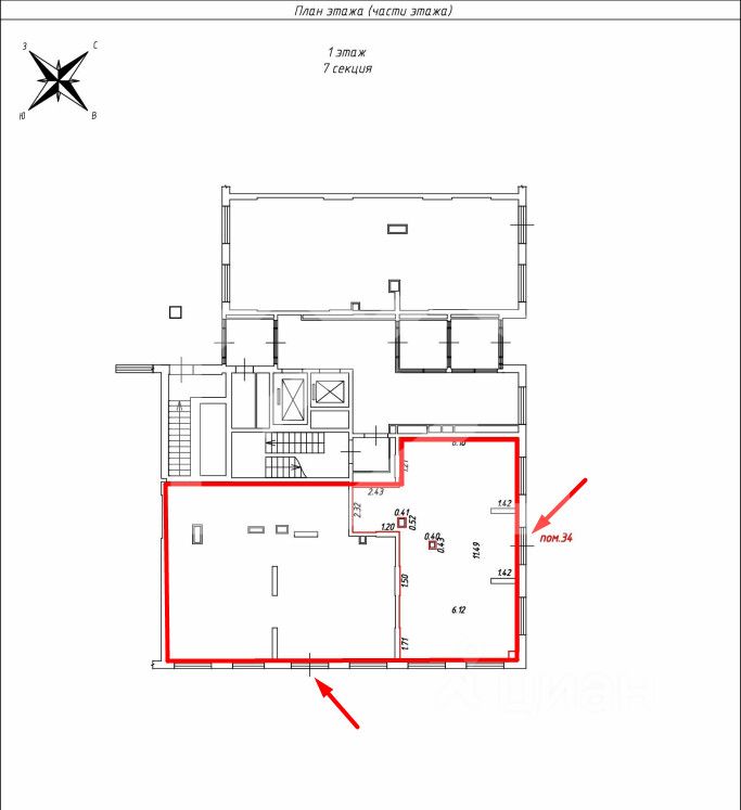 1078504. Предлагаем угловое помещение свободного назначения в ЖК "Белая Дача парк", площадью 174.8 кв. м, расположенное на первом этаже 25-этажного жилого дома. Без комиссии для покупателя.