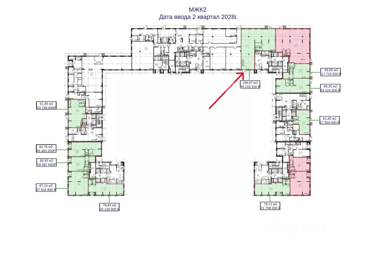895284. Предлагаем к приобретению помещение свободного назначения, площадью 196,87 кв. м., расположенное на первом этаже жилого дома в ЖК бизнес-лайт "Дюна". Без комиссии для покупателя.