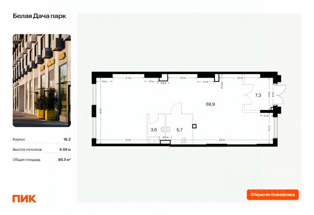 Продаётся нежилое помещение свободного назначения в квартале ПИК Белая Дача парк.