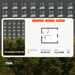Продаётся 1-комн. квартира площадью 33,5 кв.м на 13 этаже 25 этажного дома (Корпус 9, Секция 1) проекта ПИК Кузьминский лес. Светлый просторный подъезд на уровне земли, функциональная планировка, большие окна, c отделкой.