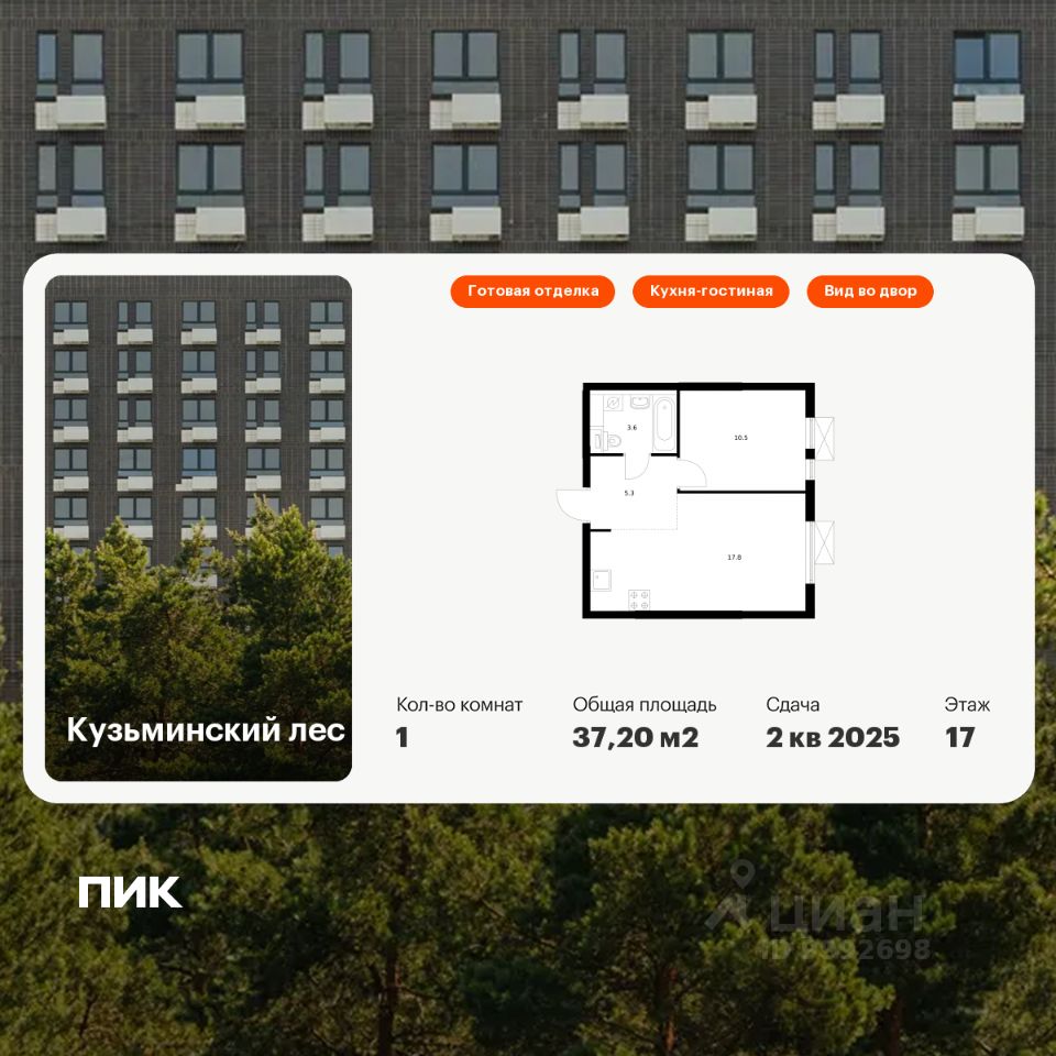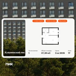 Продаётся 1-комн. квартира площадью 37,2 кв.м на 17 этаже 25 этажного дома (Корпус 10, Секция 1) проекта ПИК Кузьминский лес. Светлый просторный подъезд на уровне земли, функциональная планировка, большие окна, c отделкой.
