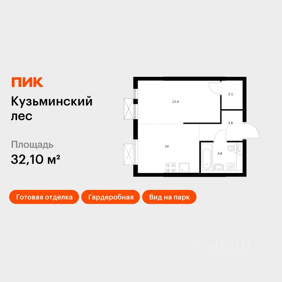 Продаётся 1-комн. квартира площадью 32,1 кв.м на 19 этаже 25 этажного дома (Корпус 10, Секция 1) проекта ПИК Кузьминский лес. Светлый просторный подъезд на уровне земли, функциональная планировка, большие окна, c отделкой.
