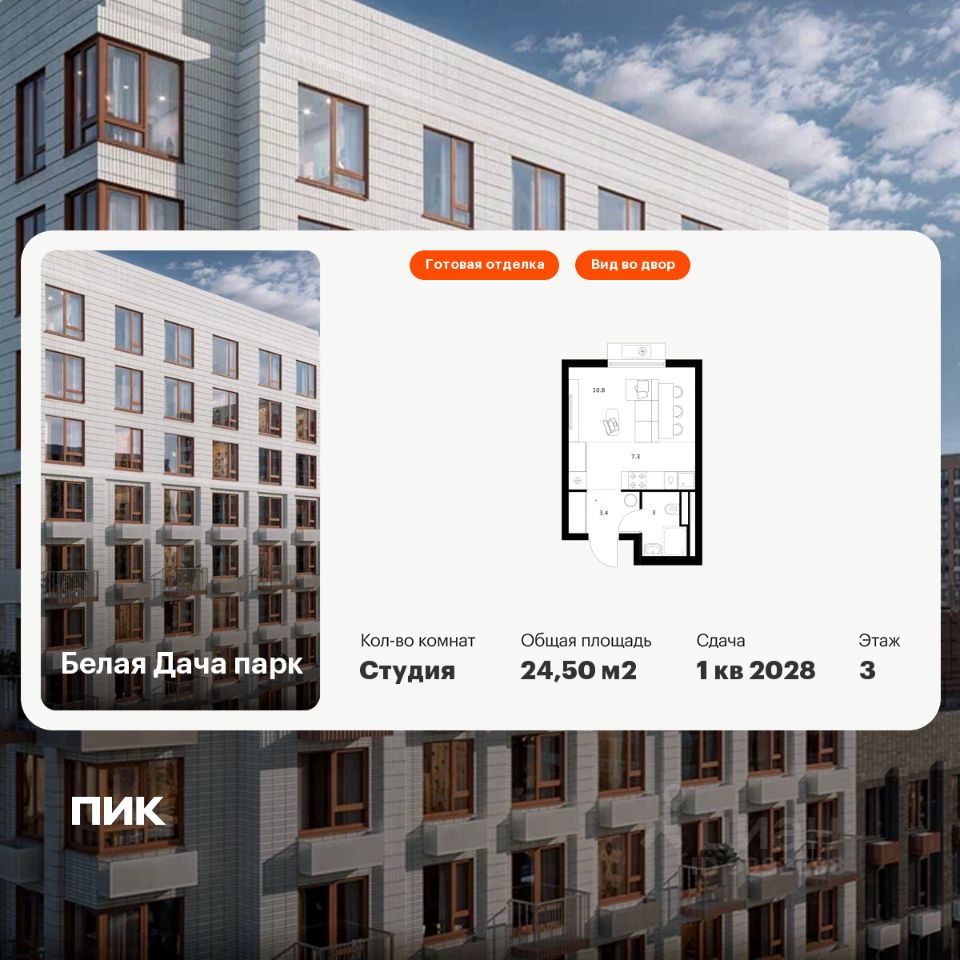 Продаётся квартира-студия площадью 24,5 кв.м на 3 этаже 11 этажного дома (Корпус 16.2, Секция 8) проекта ПИК Белая Дача парк. Светлый просторный подъезд на уровне земли, функциональная планировка, большие окна, c отделкой.