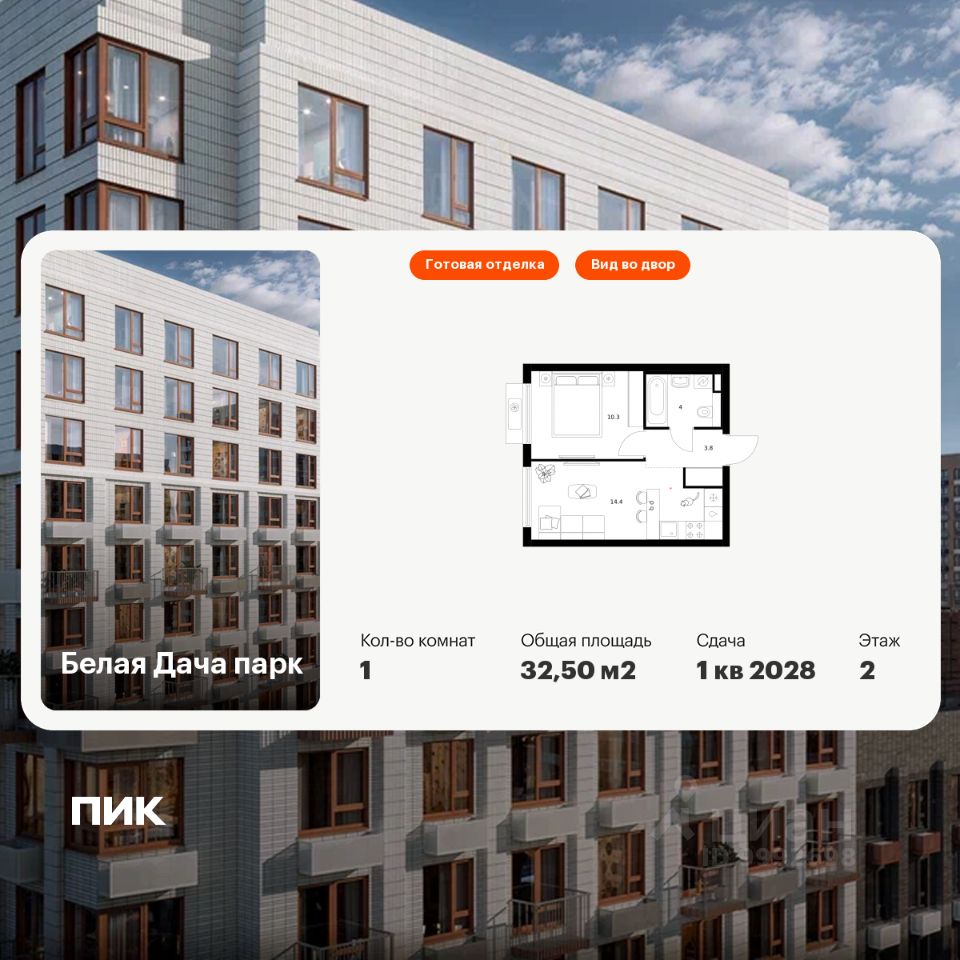 Продаётся 1-комн. квартира площадью 32,5 кв.м на 2 этаже 11 этажного дома (Корпус 16.2, Секция 8) проекта ПИК Белая Дача парк. Светлый просторный подъезд на уровне земли, функциональная планировка, большие окна, c отделкой.