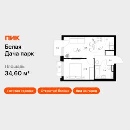 Продаётся 1-комн. квартира площадью 34,6 кв.м на 7 этаже 19 этажного дома (Корпус 16.1, Секция 3) проекта ПИК Белая Дача парк. Светлый просторный подъезд на уровне земли, функциональная планировка, большие окна, c отделкой.