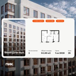 Продаётся 2-комн. квартира площадью 54,6 кв.м на 25 этаже 25 этажного дома (Корпус 16.1, Секция 1) проекта ПИК Белая Дача парк. Светлый просторный подъезд на уровне земли, функциональная планировка, большие окна, c отделкой.