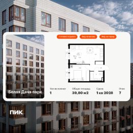 Продаётся 1-комн. квартира площадью 39,8 кв.м на 7 этаже 15 этажного дома (Корпус 16.1, Секция 4) проекта ПИК Белая Дача парк. Светлый просторный подъезд на уровне земли, функциональная планировка, большие окна, c отделкой.