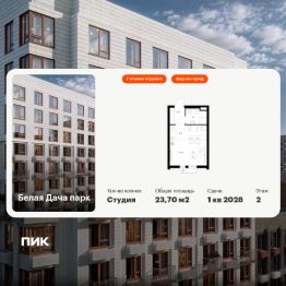 Продаётся квартира-студия площадью 23,7 кв.м на 2 этаже 14 этажного дома (Корпус 16.1, Секция 2) проекта ПИК Белая Дача парк. Светлый просторный подъезд на уровне земли, функциональная планировка, большие окна, c отделкой.