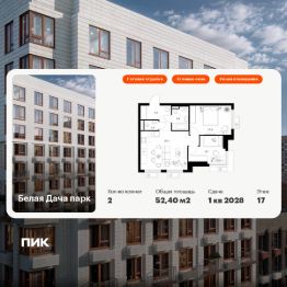 Продаётся 2-комн. квартира площадью 52,4 кв.м на 17 этаже 25 этажного дома (Корпус 16.2, Секция 5) проекта ПИК Белая Дача парк. Светлый просторный подъезд на уровне земли, функциональная планировка, большие окна, c отделкой.