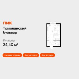 Продаётся квартира-студия площадью 24,4 кв.м на 25 этаже 25 этажного дома (Корпус 5-8, Секция 2) проекта ПИК Томилинский бульвар. Светлый просторный подъезд на уровне земли, функциональная планировка, большие окна, c отделкой.