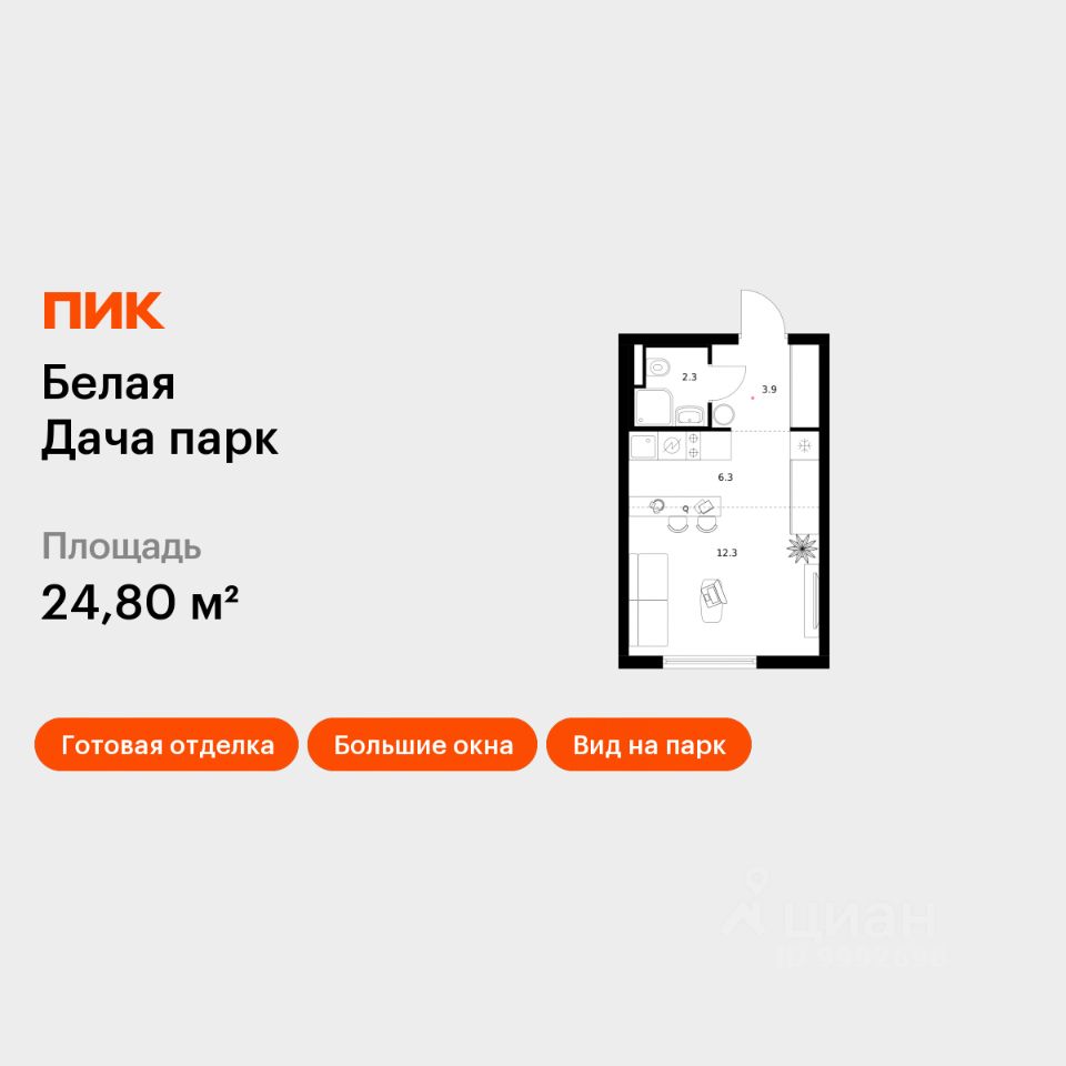 Продаётся квартира-студия площадью 24,8 кв.м на 19 этаже 19 этажного дома (Корпус 16.1, Секция 3) проекта ПИК Белая Дача парк. Светлый просторный подъезд на уровне земли, функциональная планировка, большие окна, c отделкой.