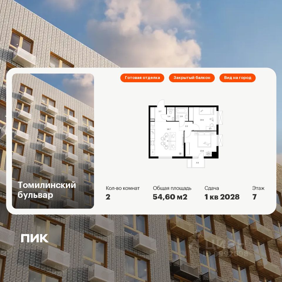 Продаётся 2-комн. квартира площадью 54,6 кв.м на 7 этаже 25 этажного дома (Корпус 5-8, Секция 1) проекта ПИК Томилинский бульвар. Светлый просторный подъезд на уровне земли, функциональная планировка, большие окна, c отделкой.