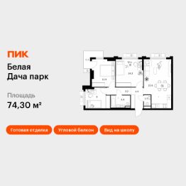 Продаётся 3-комн. квартира площадью 74,3 кв.м на 5 этаже 19 этажного дома (Корпус 16.1, Секция 3) проекта ПИК Белая Дача парк. Светлый просторный подъезд на уровне земли, функциональная планировка, большие окна, c отделкой.