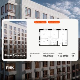 Продаётся 3-комн. квартира площадью 68 кв.м на 14 этаже 15 этажного дома (Корпус 8.2, Секция 3) проекта ПИК Белая Дача парк. Светлый просторный подъезд на уровне земли, функциональная планировка, большие окна, c отделкой.