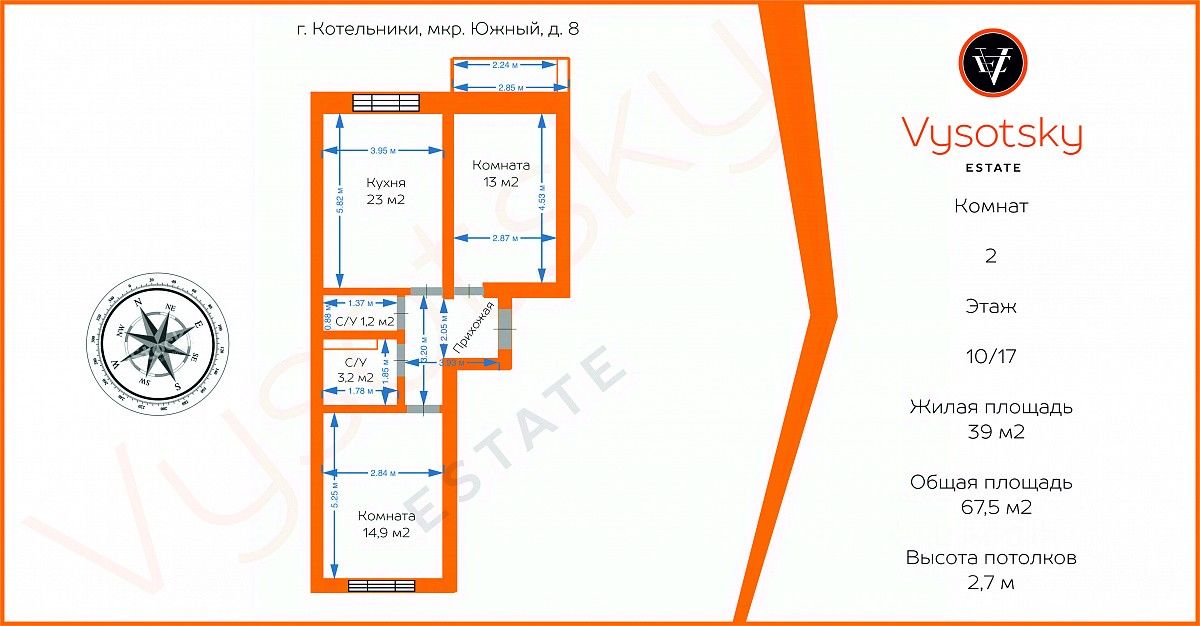 Продается просторная, светлая двухкомнатная квартира общей площадью 67,5м2 на десятом этаже монолитно-кирпичного дома.