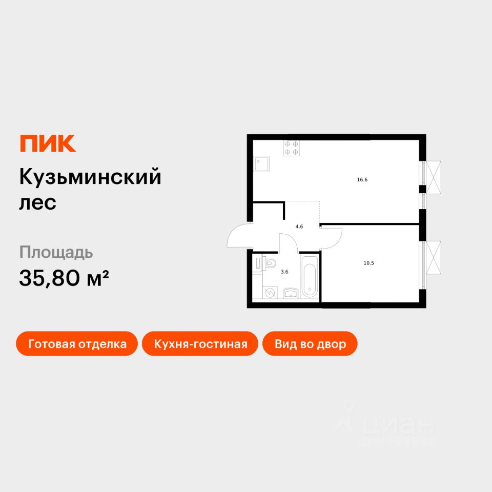 Продаётся 1-комн. квартира площадью 35,8 кв.м на 21 этаже 25 этажного дома (Корпус 10, Секция 1) проекта ПИК Кузьминский лес. Светлый просторный подъезд на уровне земли, функциональная планировка, большие окна, c отделкой.