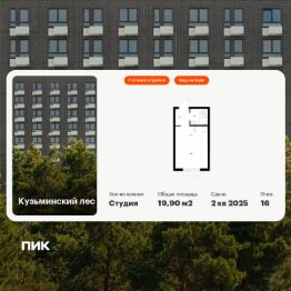 Продаётся квартира-студия площадью 19,9 кв.м на 16 этаже 25 этажного дома (Корпус 10, Секция 1) проекта ПИК Кузьминский лес. Светлый просторный подъезд на уровне земли, функциональная планировка, большие окна, c отделкой.