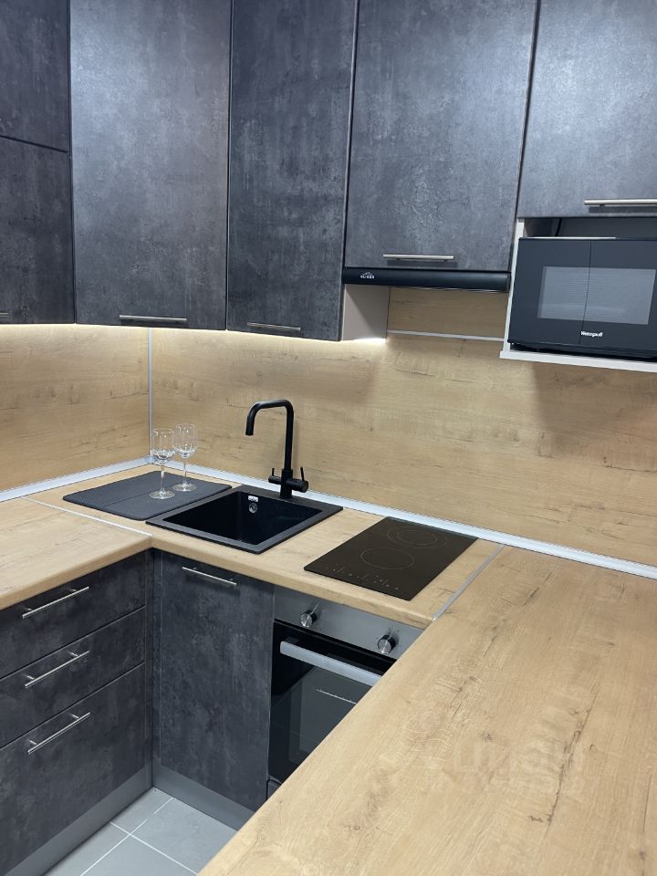 Кухонный гарнитур с духовым шкафом, микроволновкой, вытяжкой, холодильником и встроенной системой фильтрации воды