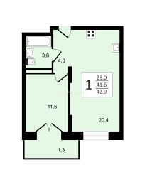 Квартира находится на 13 этаже 18-этажного монолитного дома, построенного в 2021 году. Общая площадь составляет 41,6 кв. м.
