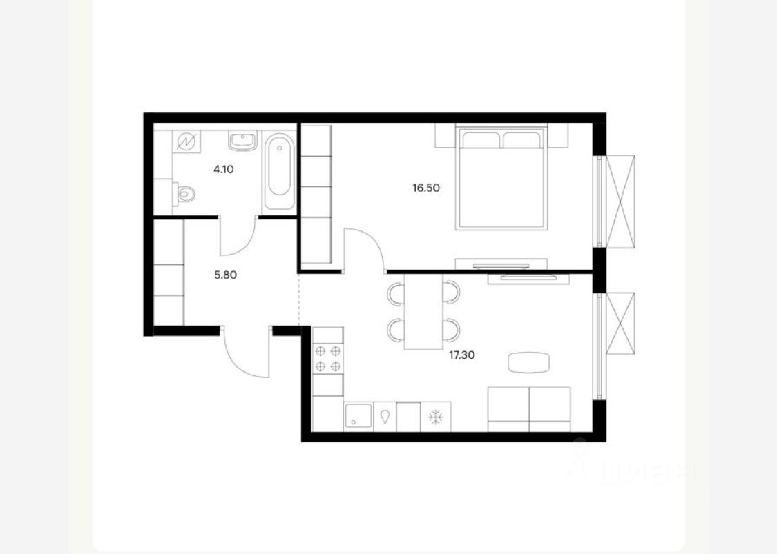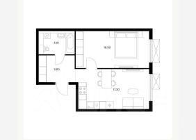 Общая площадь квартиры 43,7 кв. м , с просторной кухней 17, 3 кв.м. , в которой Вы сможете воплотить свои идеи по обустройству этой важной зоны .
