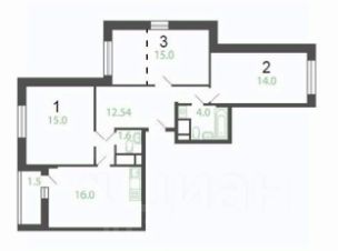 — площади комнат 15+15+14 кв м, просторная кухня —гостиная 16 кв м с выходом на лоджию, коридор 12,5 кв м и два санузла (совмещенный и отдельный)