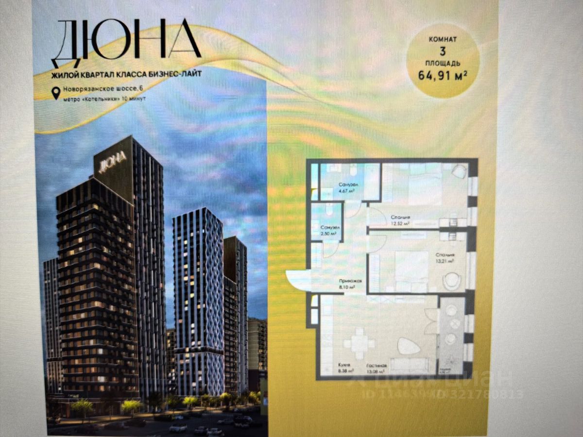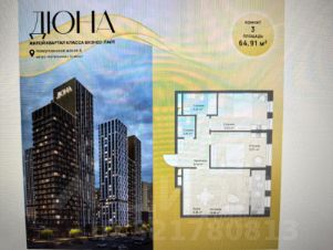 ЖК ДЮНА- Бизнес класса. Продается Евротрешка 64,91 кв.м. на 9 этаже в корпус 2. Срок сдачи 2027 год. Квартира сдается с отделкой WhiteBox одна из лучших планировок.