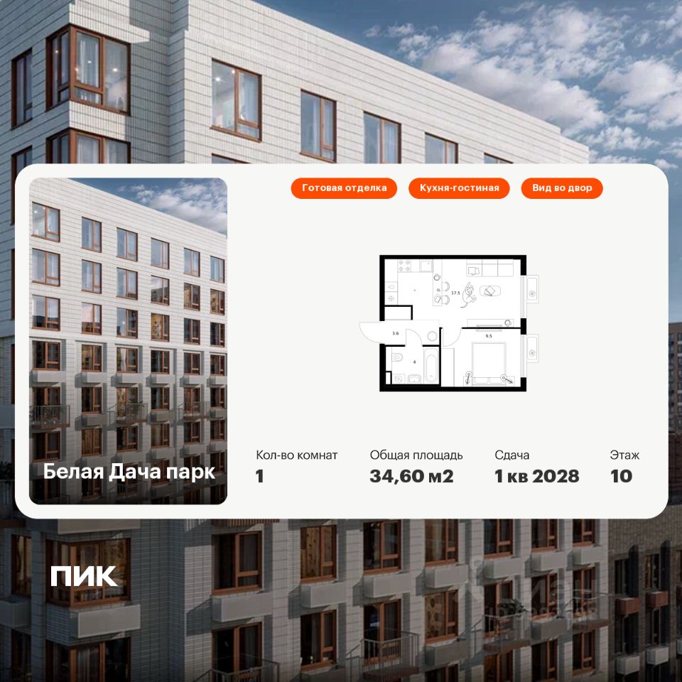 Продаётся 1-комн. квартира площадью 34,6 кв.м на 10 этаже 15 этажного дома (Корпус 16.2, Секция 6) проекта ПИК Белая Дача парк. Светлый просторный подъезд на уровне земли, функциональная планировка, большие окна, c отделкой.