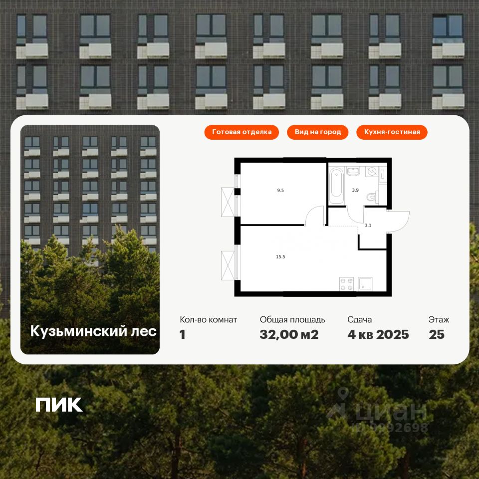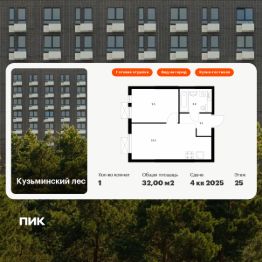 Продаётся 1-комн. квартира площадью 32 кв.м на 25 этаже 25 этажного дома (Корпус 9, Секция 1) проекта ПИК Кузьминский лес. Светлый просторный подъезд на уровне земли, функциональная планировка, большие окна, c отделкой.