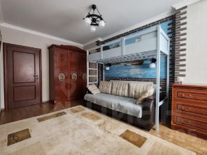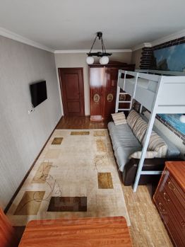 В детской над диваном установлена кровать-чердак с креплением на стену, это полноценное спальное место для взрослого человека. При желании её можно демонтировать.