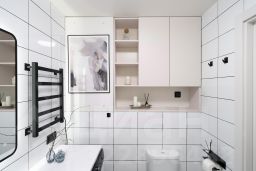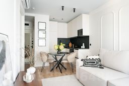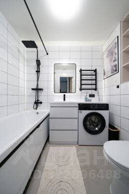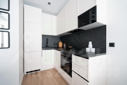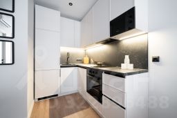 В квартире есть все для комфортного проживания: кухня, встроенные духовой шкаф, холодильник, варочная поверхность, вытяжка, свч печь и посудомоечная машина.