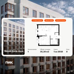 Продаётся 1-комн. квартира площадью 35,2 кв.м на 8 этаже 14 этажного дома (Корпус 16.1, Секция 2) проекта ПИК Белая Дача парк. Светлый просторный подъезд на уровне земли, функциональная планировка, большие окна, c отделкой.