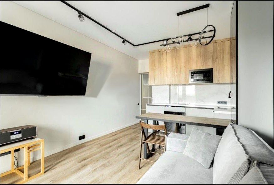 кухня-гостиная 17 кв.м, состоит из двух зон:
