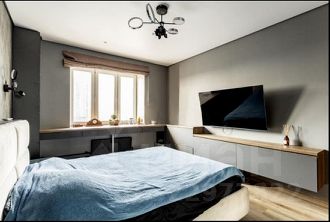 2 изолированные комнаты по 17 кв.м. В каждой комнате выполнена просторная рабочая зона со стеллажами. В спальне встроенный вместительный шкаф-купе.