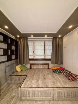 Большая однокомнатная квартира с круговой шумоизоляцией, гардеробной и двухместным кабинетом на утеплённой лоджии.