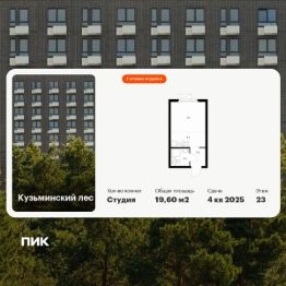Продаётся квартира-студия площадью 19,6 кв.м на 23 этаже 25 этажного дома (Корпус 12, Секция 1) проекта ПИК Кузьминский лес. Светлый просторный подъезд на уровне земли, функциональная планировка, большие окна, c отделкой.