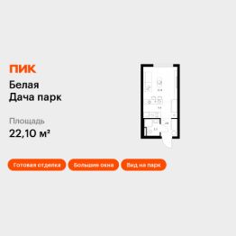 Продаётся квартира-студия площадью 22,1 кв.м на 20 этаже 20 этажного дома (Корпус 16.2, Секция 7) проекта ПИК Белая Дача парк. Светлый просторный подъезд на уровне земли, функциональная планировка, большие окна, c отделкой.