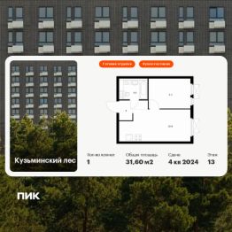 Продаётся 1-комн. квартира площадью 31,6 кв.м на 13 этаже 25 этажного дома (Корпус 11, Секция 1) проекта ПИК Кузьминский лес. Светлый просторный подъезд на уровне земли, функциональная планировка, большие окна, c отделкой.