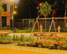 В корпусах спроектированы просторные подъезды с высокими потолками, витражным остеклением, современным дизайном и двумя входами: со двора и улицы. Входы расположены на уровне земли, без ступеней и пандусов. В больших зелёных дворах без автомобилей оборудуются места для отдыха, детские и спортивные площадки.