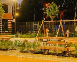 В корпусах спроектированы просторные подъезды с высокими потолками, витражным остеклением, современным дизайном и двумя входами: со двора и улицы. Входы расположены на уровне земли, без ступеней и пандусов. В больших зелёных дворах без автомобилей оборудуются места для отдыха, детские и спортивные площадки.