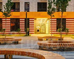В корпусах спроектированы просторные подъезды с высокими потолками, витражным остеклением, современным дизайном и двумя входами: со двора и улицы. Входы расположены на уровне земли, без ступеней и пандусов. В больших зелёных дворах без автомобилей оборудуются места для отдыха, детские и спортивные площадки.