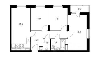 Просторная и светлая квартира с качественным ремонтом для себя. Продуманная планировка: кухня-гостиная и три отдельные спальни, удобные зоны хранения, стильный интерьер.
