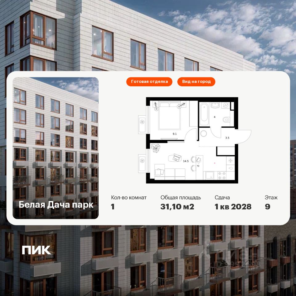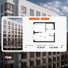 Продаётся 1-комн. квартира площадью 31,1 кв.м на 9 этаже 15 этажного дома (Корпус 16.2, Секция 6) проекта ПИК Белая Дача парк. Светлый просторный подъезд на уровне земли, функциональная планировка, большие окна, c отделкой.
